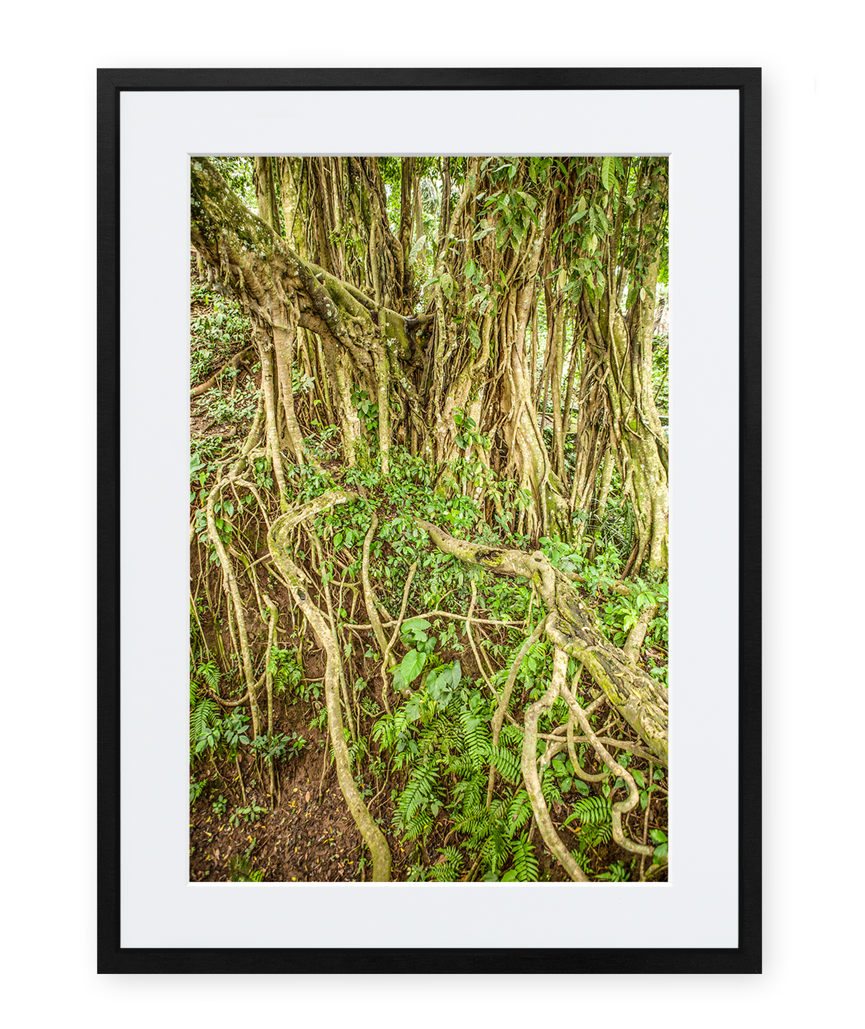 The standard mat sizes for artwork 12x18” is 1.5" on all sides. Our 16x24” pieces have a 2.5” mat. The extra large sizes including 20x30” and 24x36” have a 3” matte. The 30x45” has a 4” mat and 38”x57” a 5” mat. Different sized mats are available with your artwork when you place a custom order. Please note that the mat ratios within the frame in the product photos may be slightly different from the actual product. Please contact us if you have questions about the mockups.
