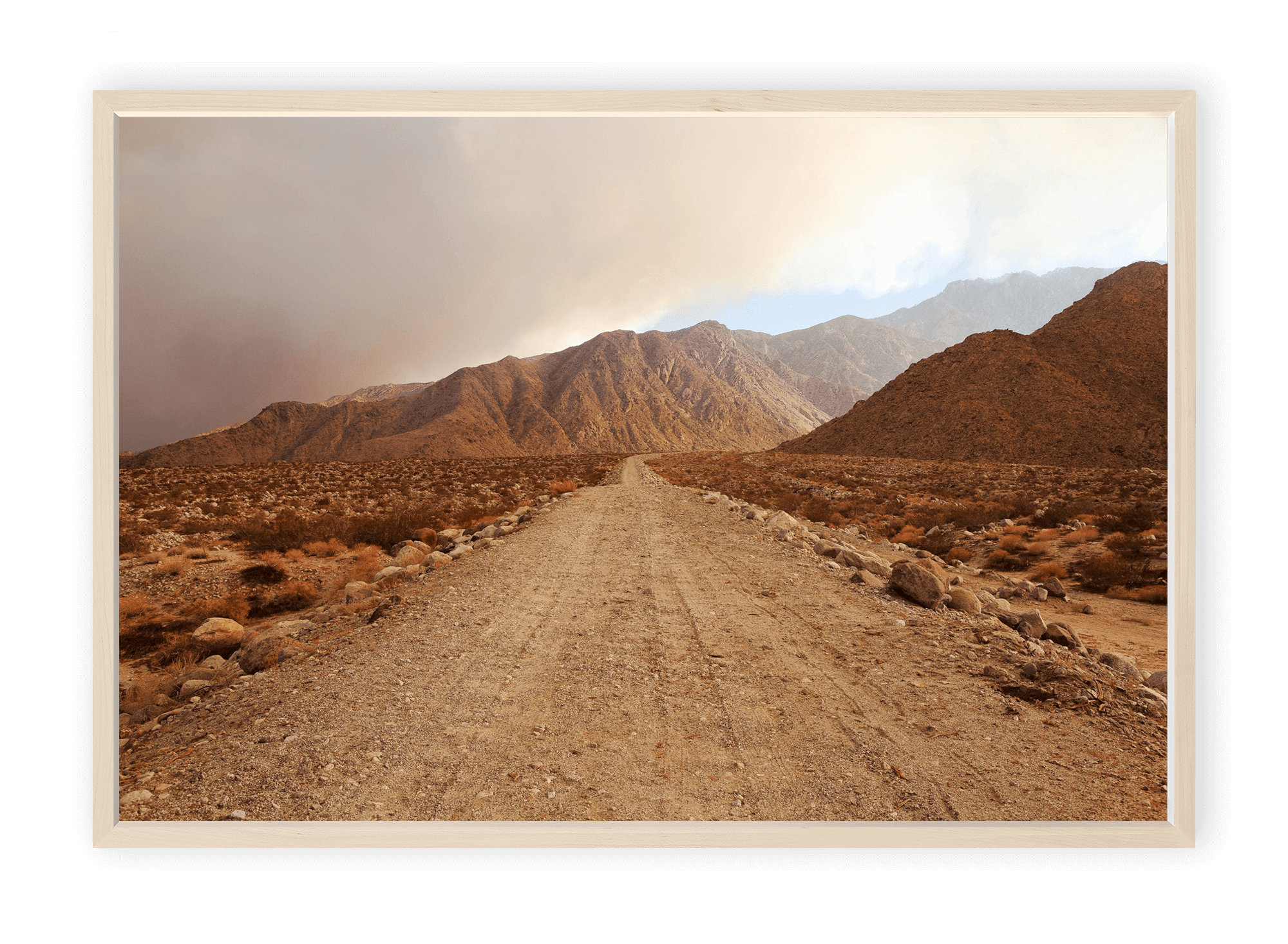 Golden Passage captures the elemental beauty of the California desert at dawn, where a quiet road stretches toward distant mountains bathed in soft amber light. The composition is both grounding and transcendent — a study in texture, tone, and transition. The open pathway creates a sense of invitation, drawing the viewer forward into the unknown. Layers of ochre and gold dissolve into the horizon, evoking the promise of exploration and the calm of solitude.